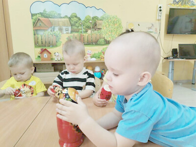 Малыши с восторгом наблюдали, как одна матрёшка открывается , а внутри… еще одна. Это простое действие для них стало настоящим волшебством. Чтобы закрепить новые знания, педагог устроила для детей настоящий праздник с играми: «Собери семью», «Найди пару», «Веселый хоровод».