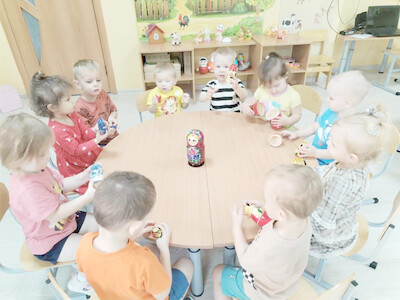 В группе «Радуга» прошёл тематический День матрёшки. К малышам в гости пришла самая настоящая знаменитая матрёшка - воспитанница подготовительной к школе группы Вика Гаммер.