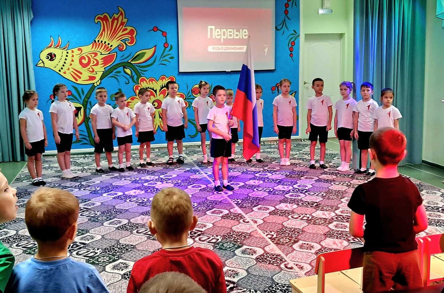 В детском саду «Алёнушка» состоялось историческое для дошкольного учреждения событие. Впервые воспитанники подготовительной к школе группы были приняты в ряды Всероссийского Движения Первых.