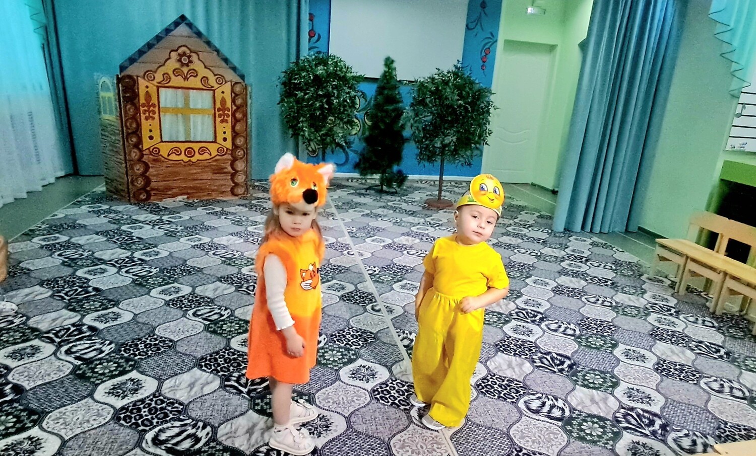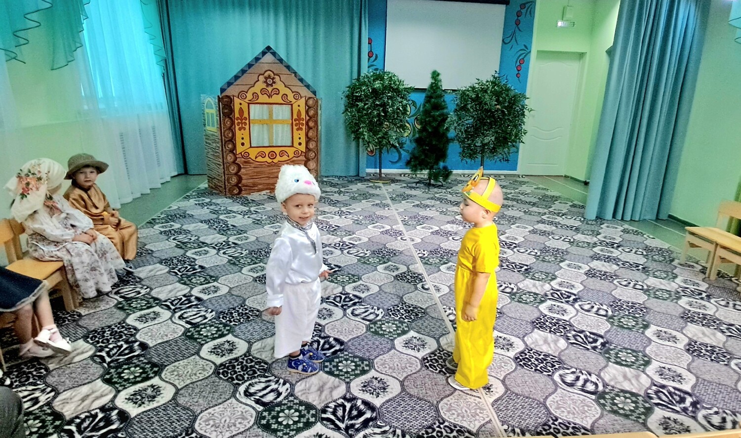 Совместно с педагогом Людмилой Васильевной, юные актёры не разучивали сложные роли, а проживали сказку в игре, с восторгом примеряя костюмы. И вот настал день показа спектакля маленьким зрителям. Рассказчиком был воспитатель, а ребята с удовольствием выполняли действия своих персонажей. Дети были в восторге от театрализованной игры. Даже самые скромные ребята с удовольствием участвовали в спектакле!