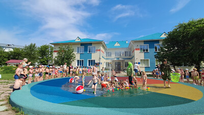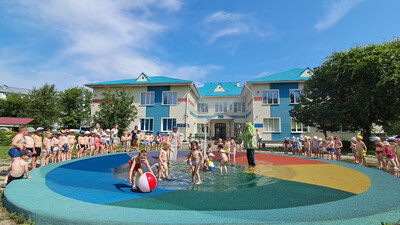 После открытия, дети с огромным удовольствием окунулись в теплую воду бассейна!