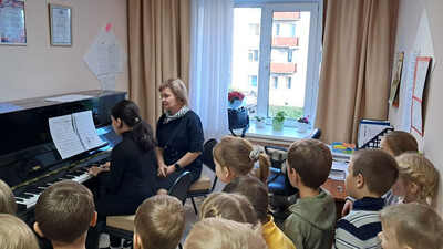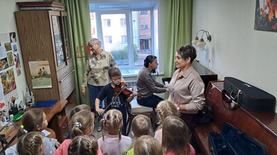 Дошкольники были приглашены на экскурсию в Музыкальную детскую школу, которую провела преподаватель Трепетова Татьяна Михайловн. Она рассказала о том, чем занимаются ребята, посещающие разные отделения: фортепианное, хоровое, художественное, отделение народных инструментов. Татьяна Михайловна, познакомила наших дошколят с различными музыкальными инструментами, показала классы, где занимаются учащиеся, костюмы, оборудование, которыми они пользуются. После экскурсии по школе, наши воспитанники прослушали концерт в исполнении учеников школы.